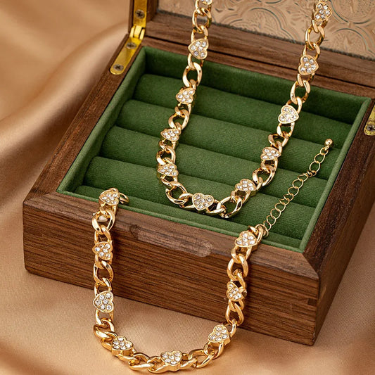 Vendor:Azura-London ShopTrendy 2-Piece Bracelet & Necklace Set – Gold Chain Links with Sparkling Heart Charm