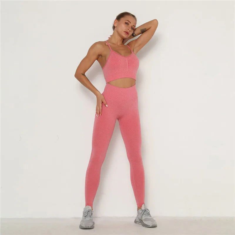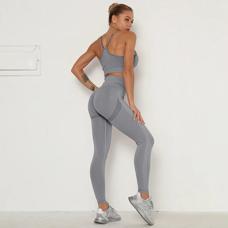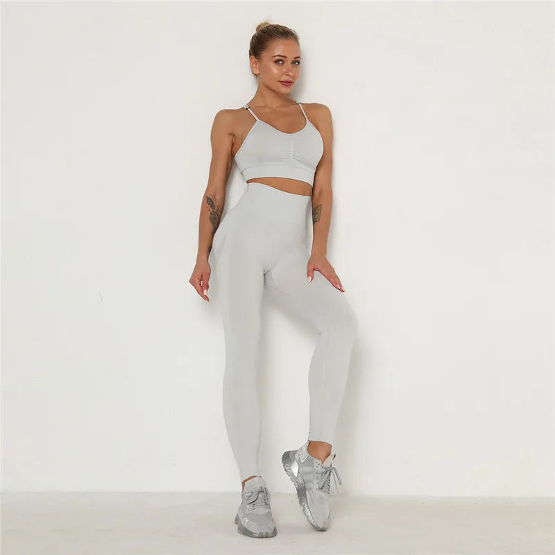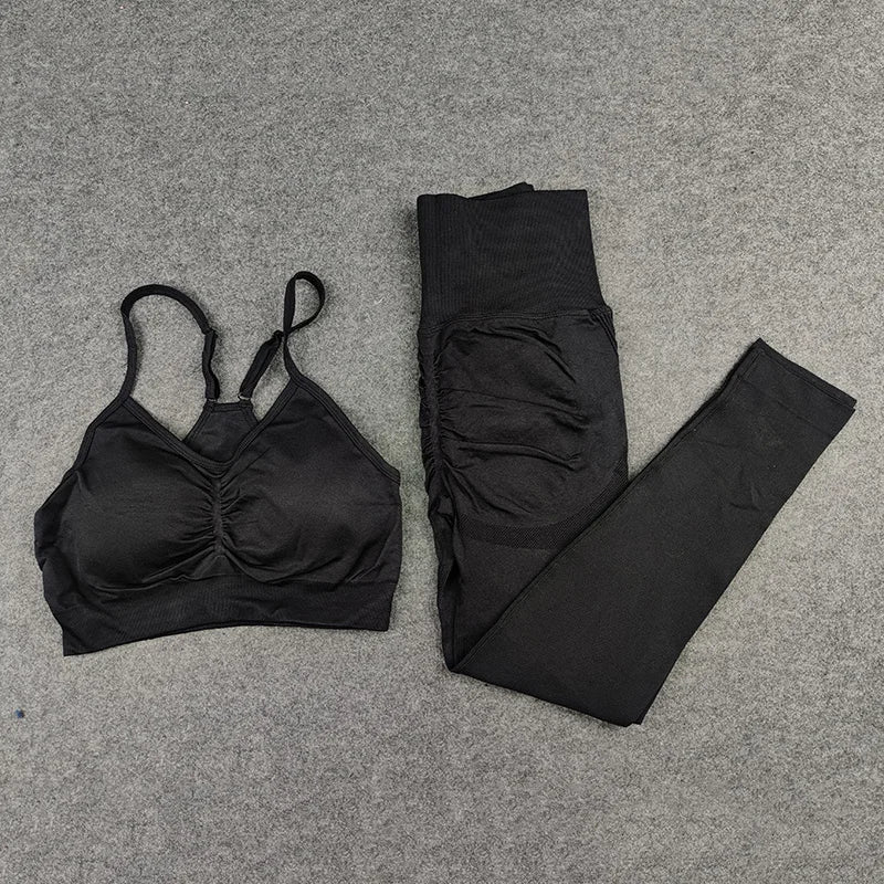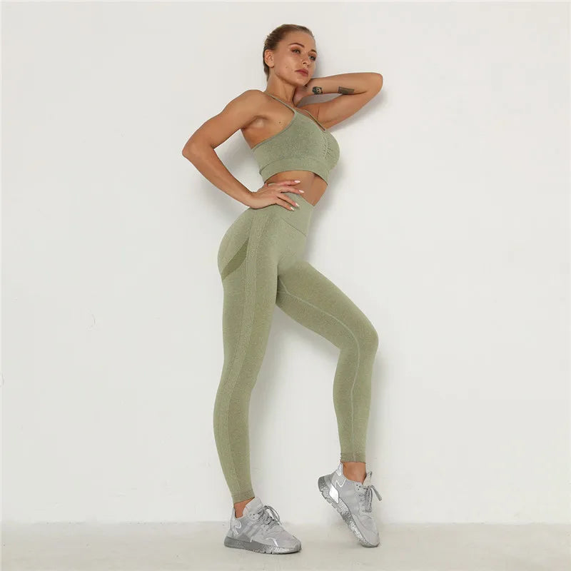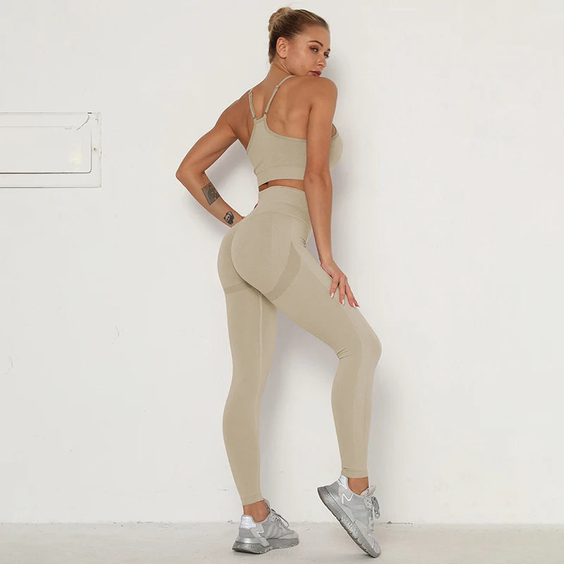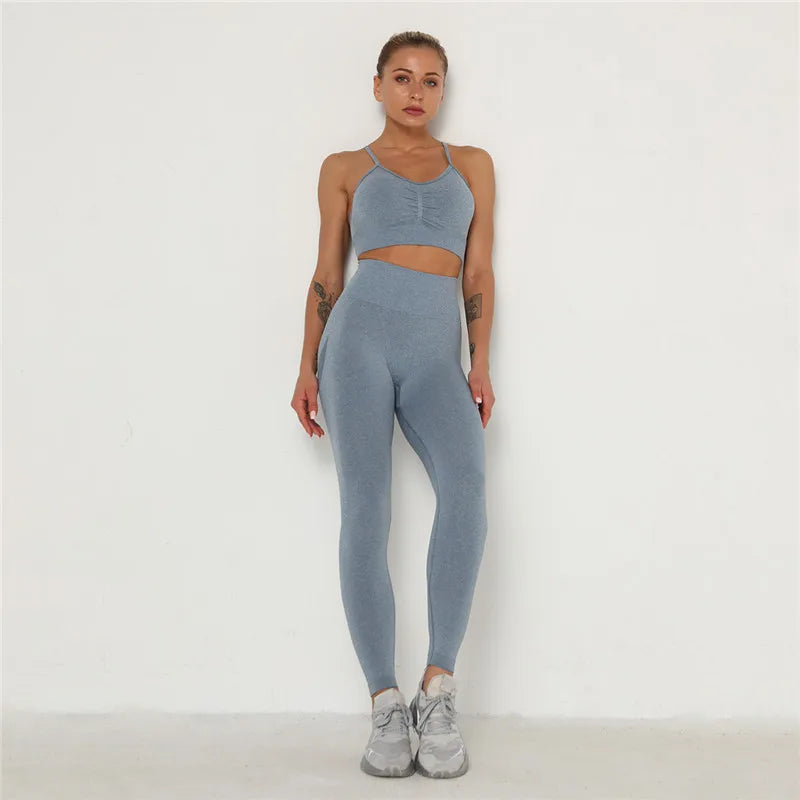 Women’s Workout Clothing Set – Seamless Sports Bra + High Waist Leggings for Gym & Training