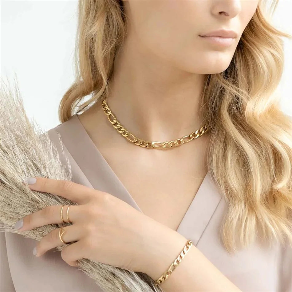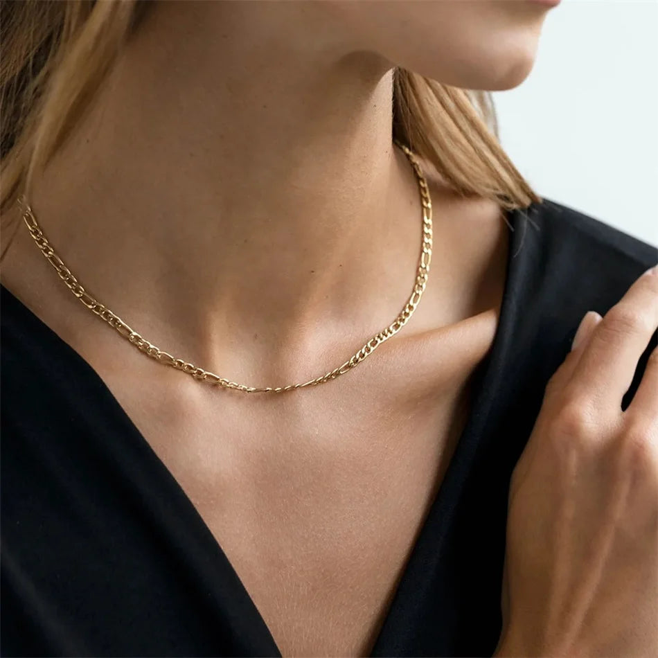 eManco Figaro Link Chains Necklace Stainless Steel Chain for Men Women Colar Gift Jewelry Cuban Chain Choker 4MM/6MM/8MM
