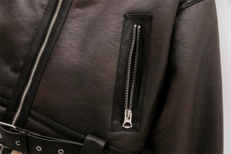 RARF 2024 New Woman's Fashion Thick Warm Faux Shearling Jacket Coat Vintage Long Sleeve Belt Hem Female Outerw