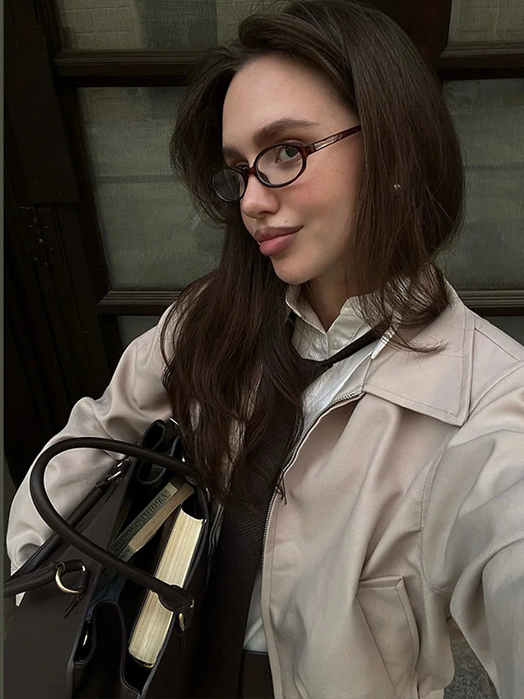 ✅ Lapel Collar & Zipper Bomber Jacket – Stylish and practical
